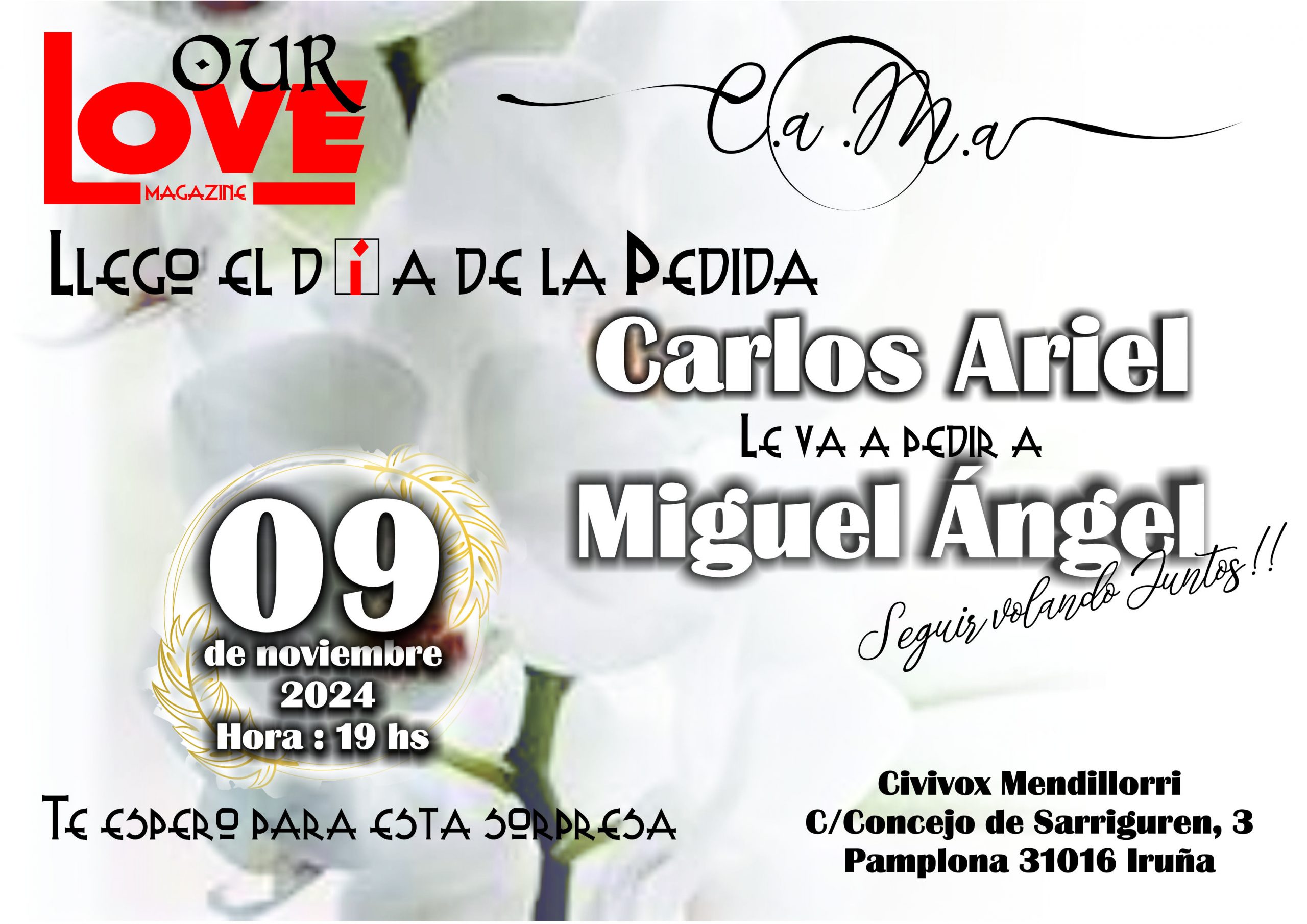 Toda una odisea en preparar algo especial, porque así lo sentía Carlos Ariel que su pedida tenía que ser especial emotiva y con las personas que quieren a su amado Miguel Ángel, Familia y amigos se dieron cita el 9 de noviembre a las 19 hs en el lugar que para los dos tendría un significado .